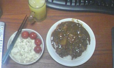 上にかかってるソースは、あのカレーと同じで缶にはいったデミグラス粉末をにつめたものです。