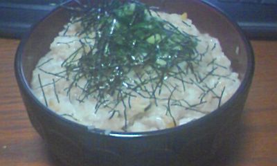 マッシュポテト+ツナ+たまねぎ、それに青海苔+マヨ