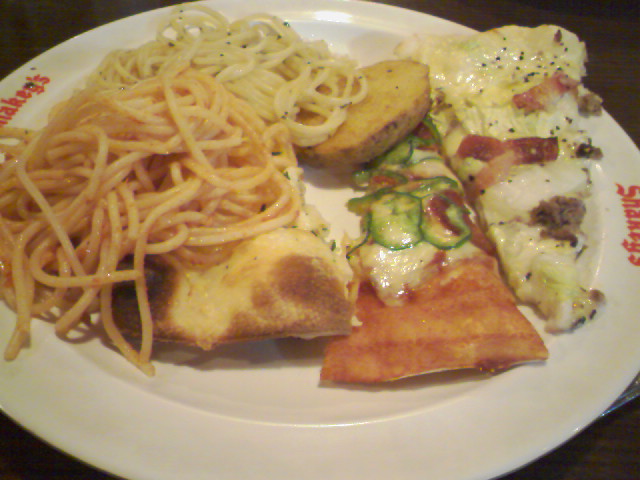 ピザ、パスタ、カレー、芋が食べ放題です。