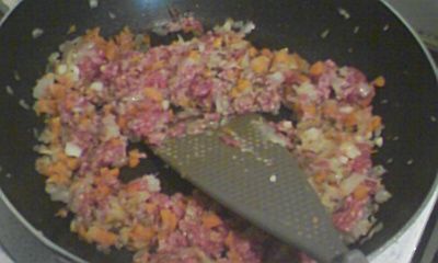 あたりをみじん切りにして、炒めます。