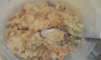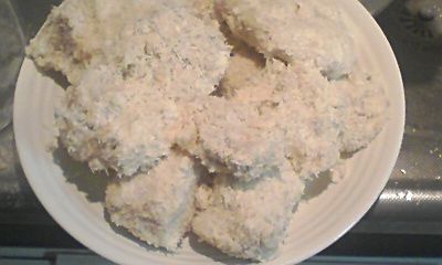 玉子は使わないで、小麦粉を水で溶いたものをつなぎにして