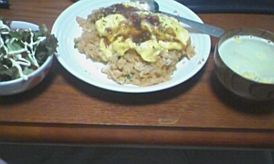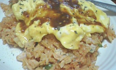 上にかかってるソースは、あのカレーと同じで缶にはいったデミグラス粉末をにつめたものです。