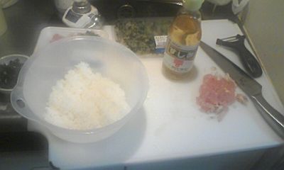 酢飯に、しょうゆ、だしの素をまぜて