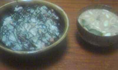 刻みねぎ、のりを具財にして